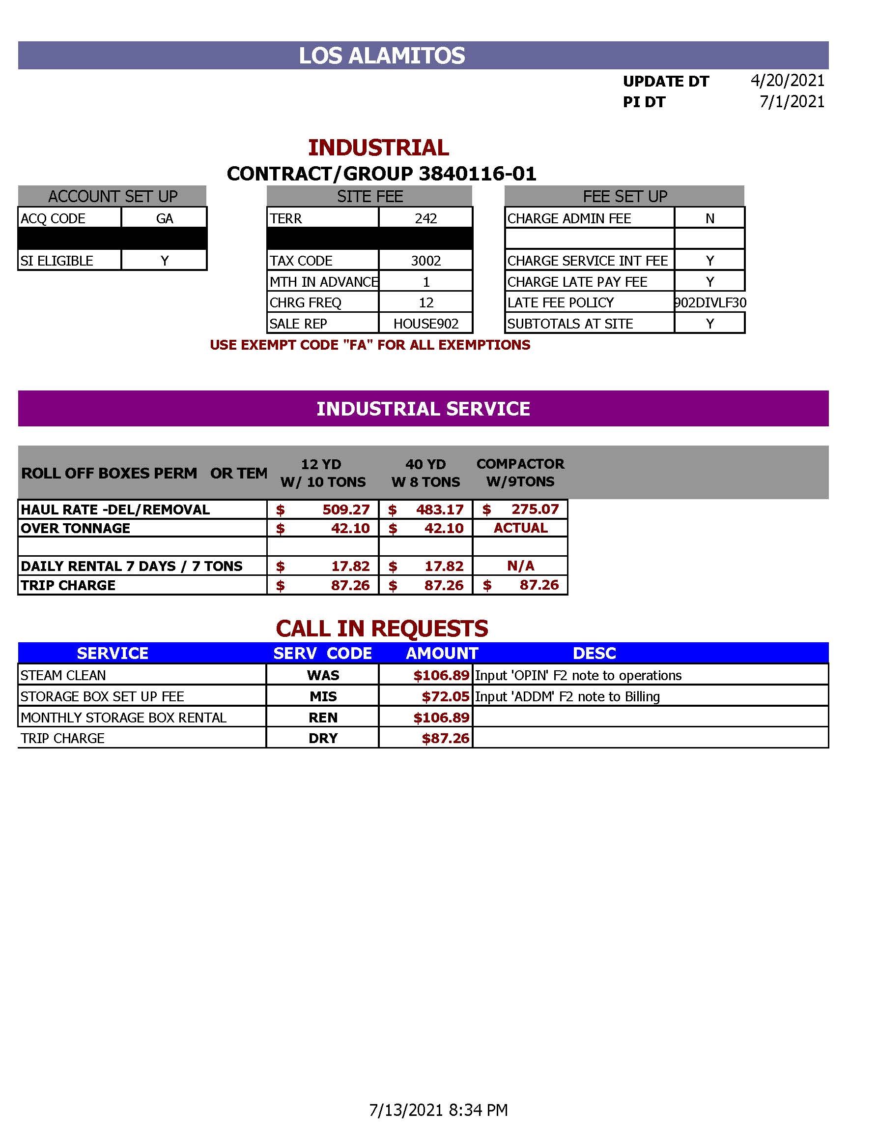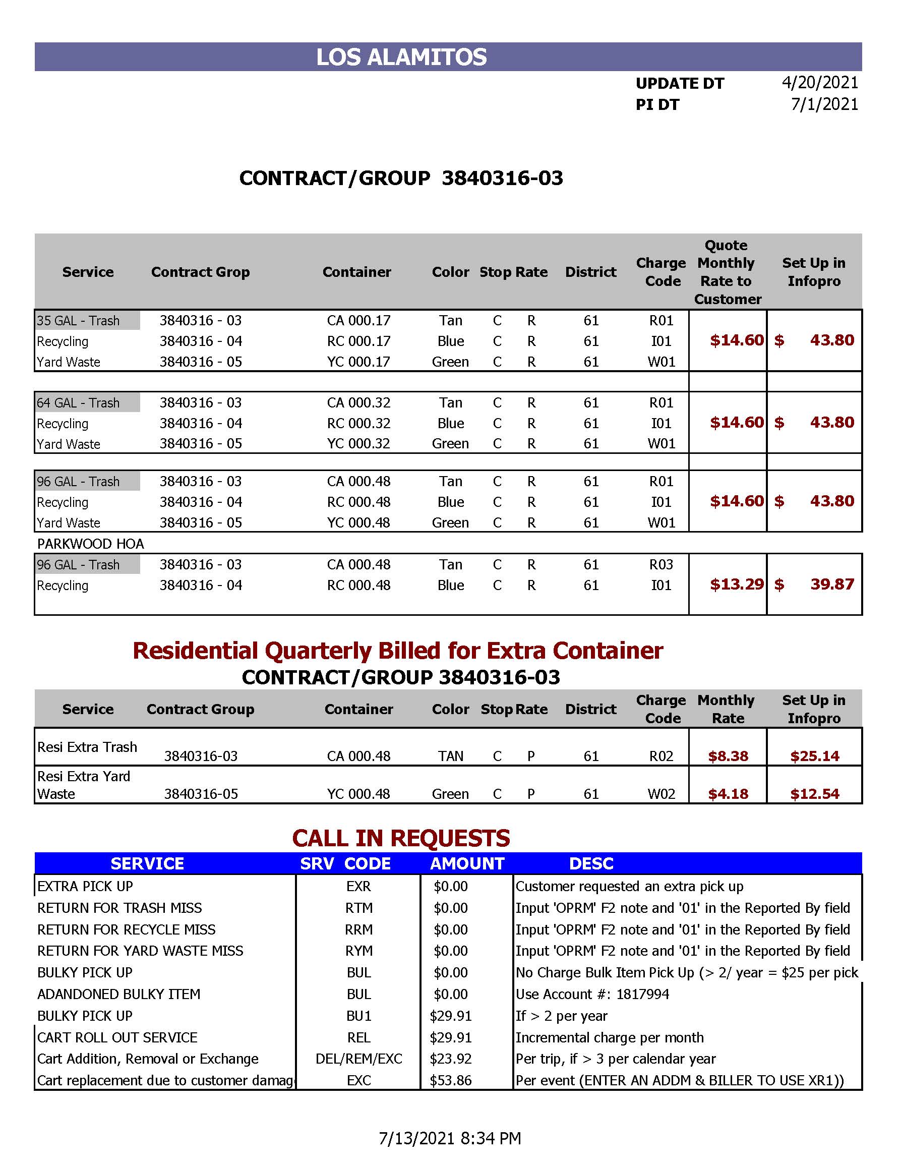 Industrial Trash Collection Rate Sheet, Effective July 1, 2021 (JPG)