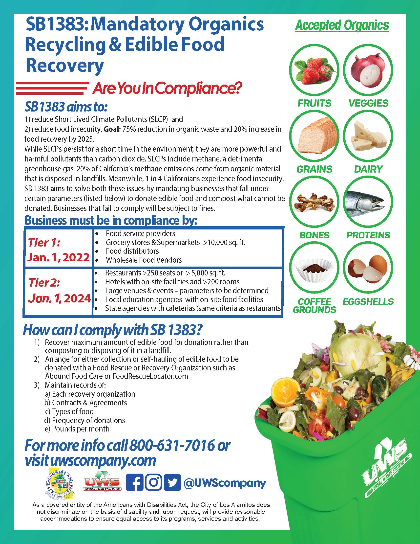 To learn more about the State of California mandates pertaining to organics recycling and how it affects residents and businesses of Los Alamitos click here.